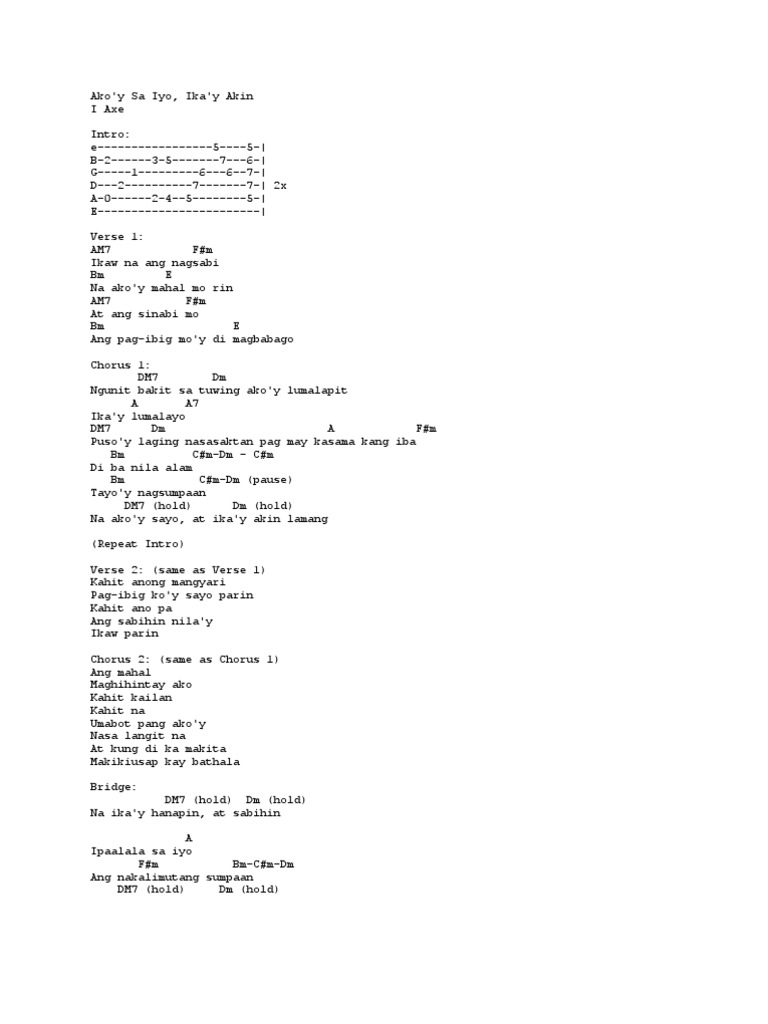 Na akoy sayo at ikay akin lamang. Umasa kang maghihintay ako kahit kailan Kahit na umabot pang akoy. Habang buhay English translation.